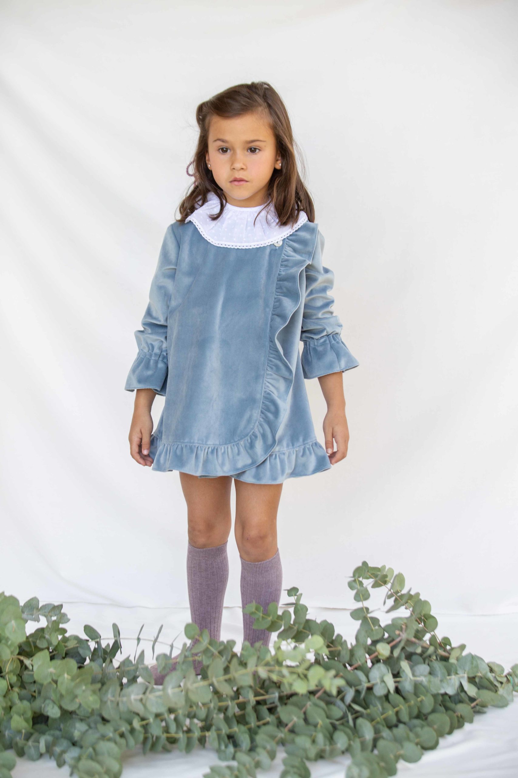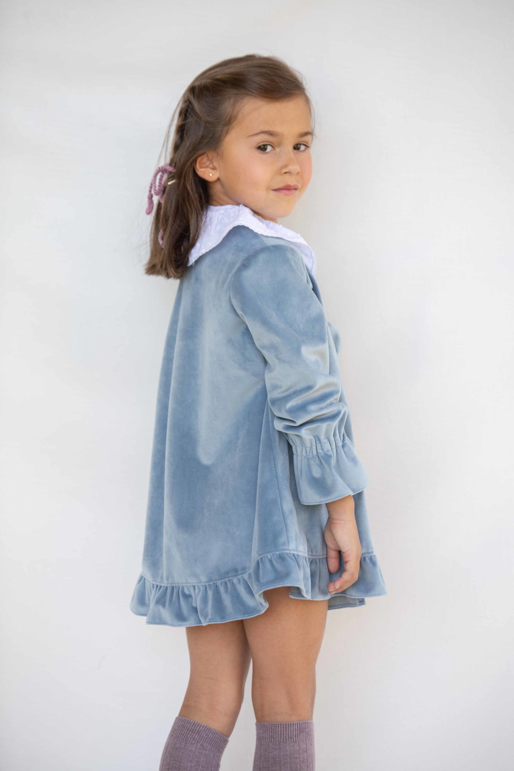 Abrigo de terciopelo cruzado con volante sin cuello. perfecto para poner encima de un modelo básico. Este abrigo se hace por encargo pudiendo cambiar el tejido y colores. Los precios son de la uno a la 6. Para otras tallas consulta.