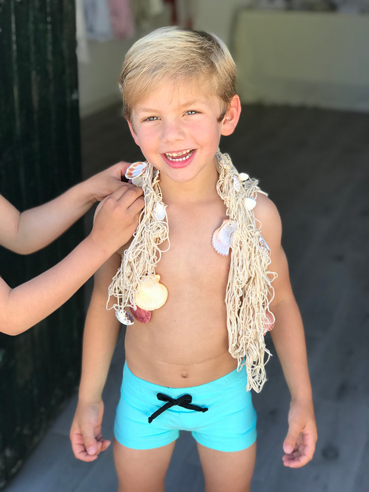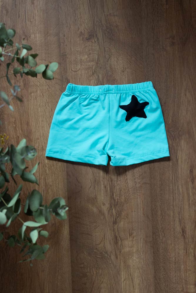 Bóxer niño turquesa con estrella negra.