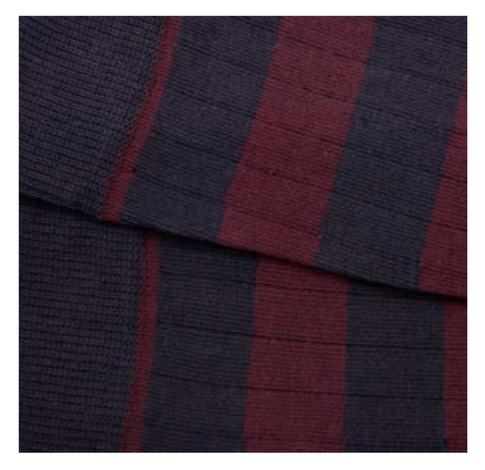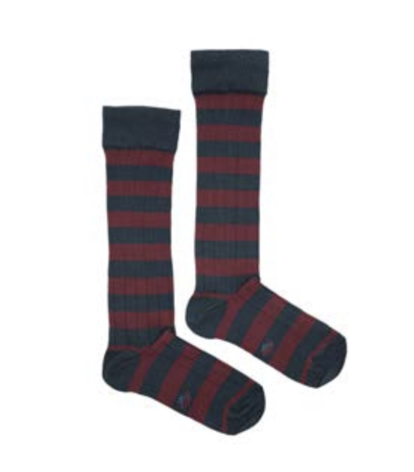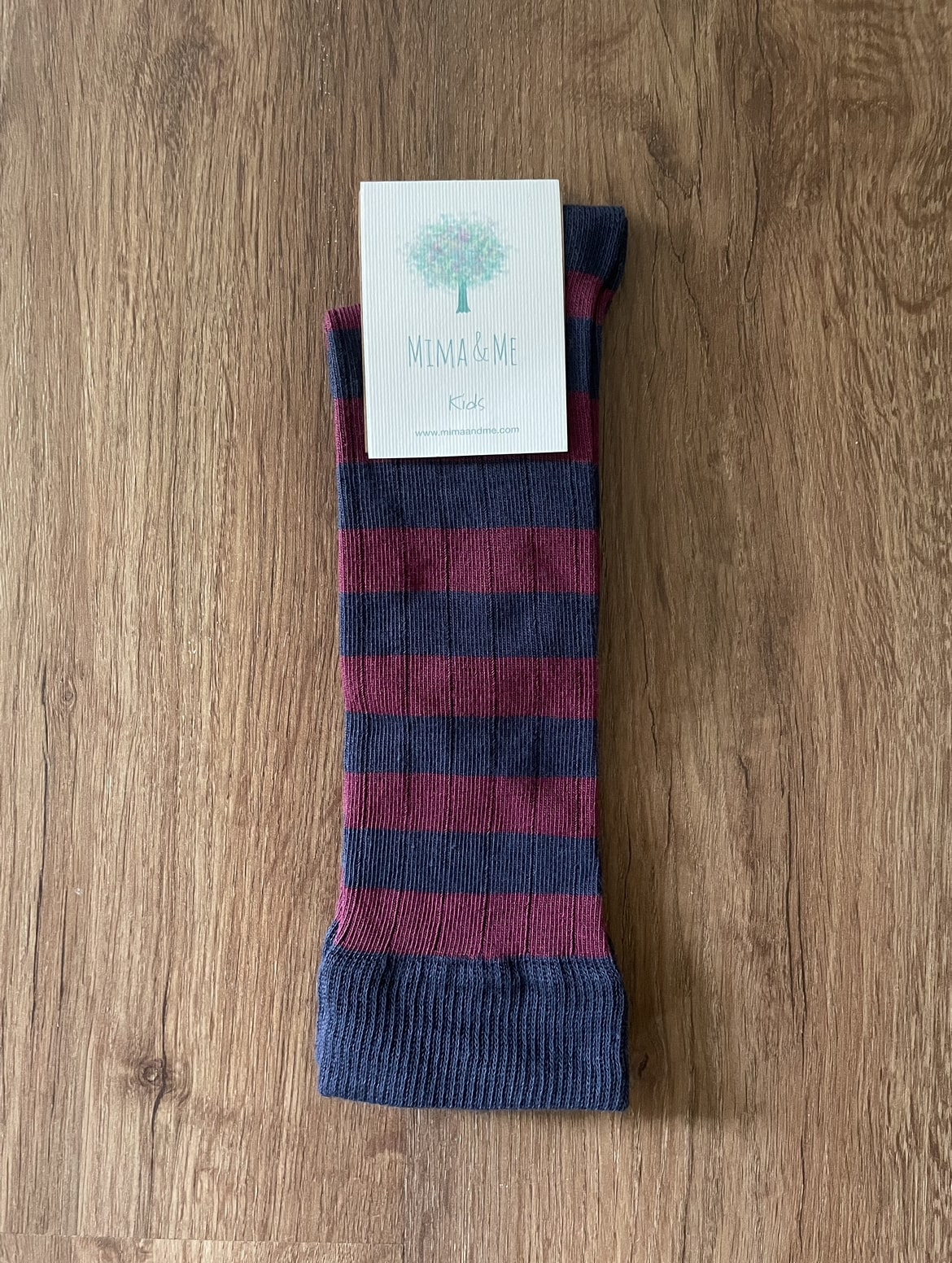 CALCETIN ALTO CON RAYAS AZUL Y BURDEOS.