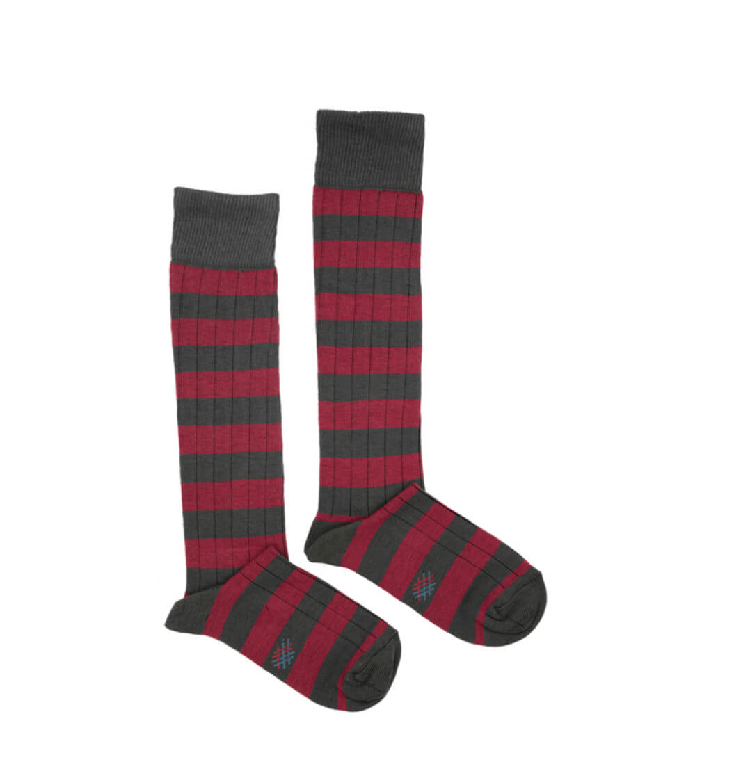 CALCETÍN RAYAS GRIS VERDOSO/BURDEOS
