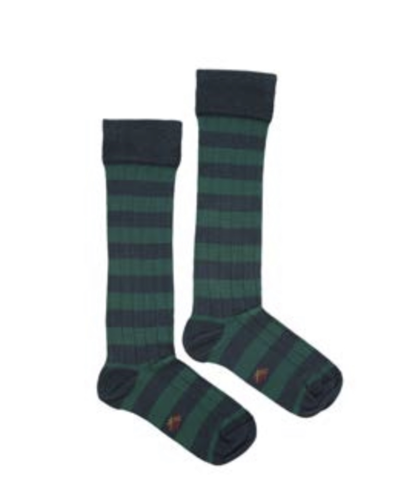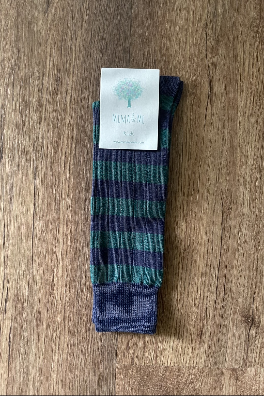 CALCETIN ALTO RAYAS AZULES Y VERDES.
