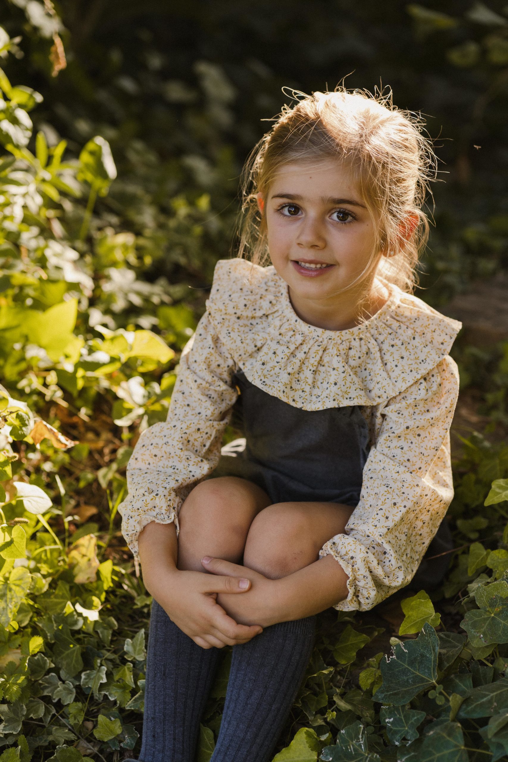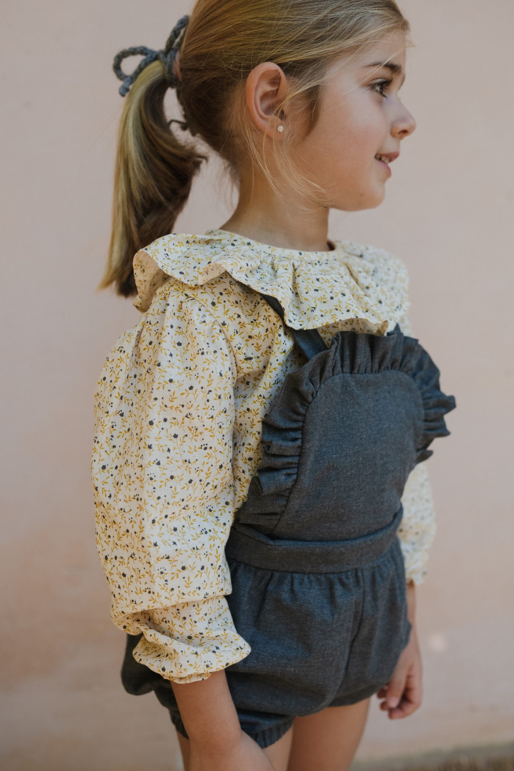 CAMISA ESTAMPADA CON FLORES ANTRACITAS Y MOSTAZA.