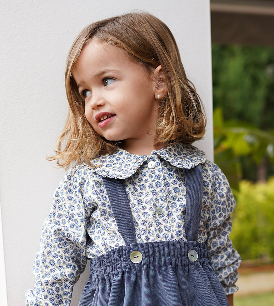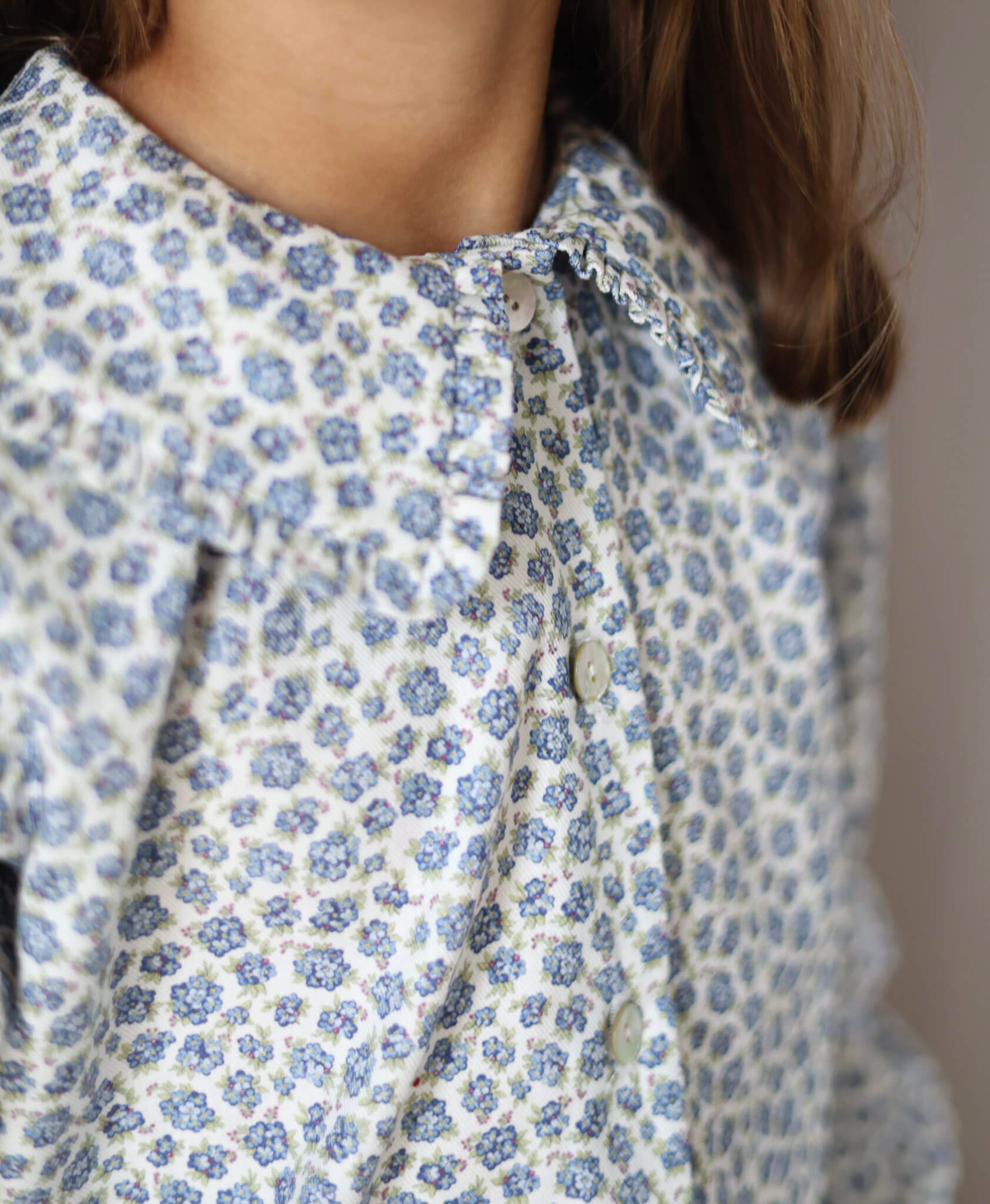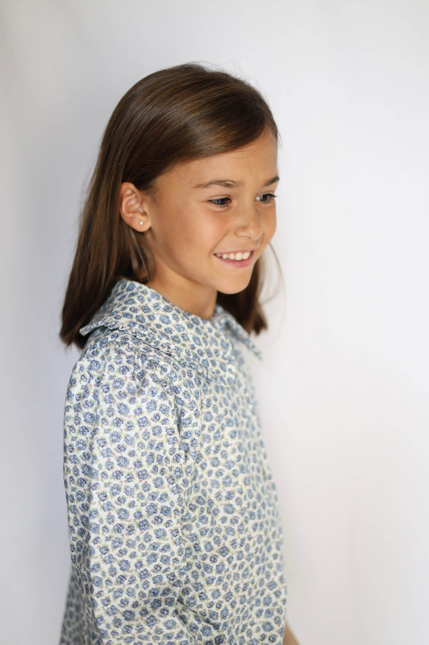 CAMISA VILLELA ALGODÓN ESTAMPADA EN TONO AZUL CON DOBLE CUELLO.