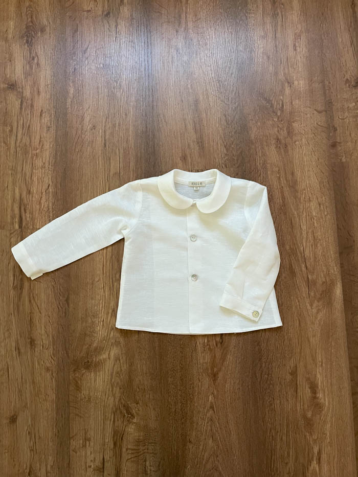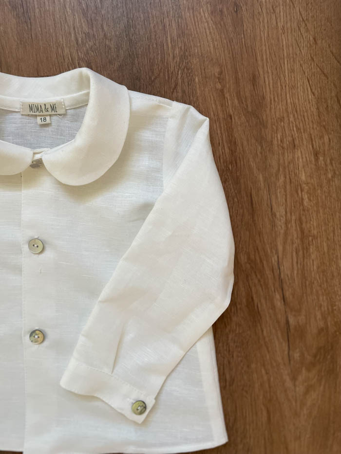 Camisa cuello bebé abrochada en la parte delantera de mangas largas. El precio puede variar según tejido.