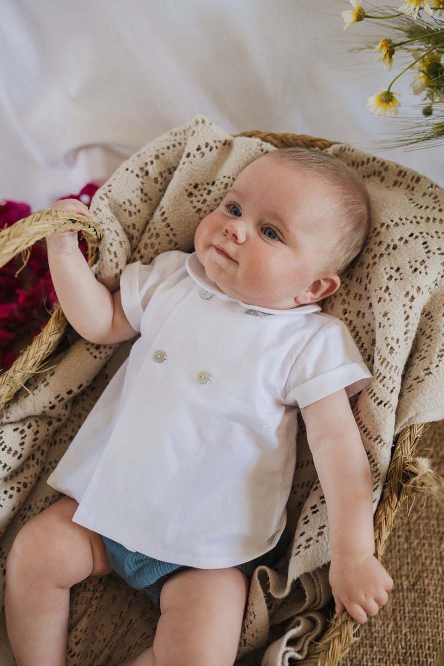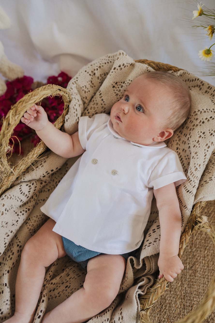 Camisa de oxford cruzada cuello bebé.