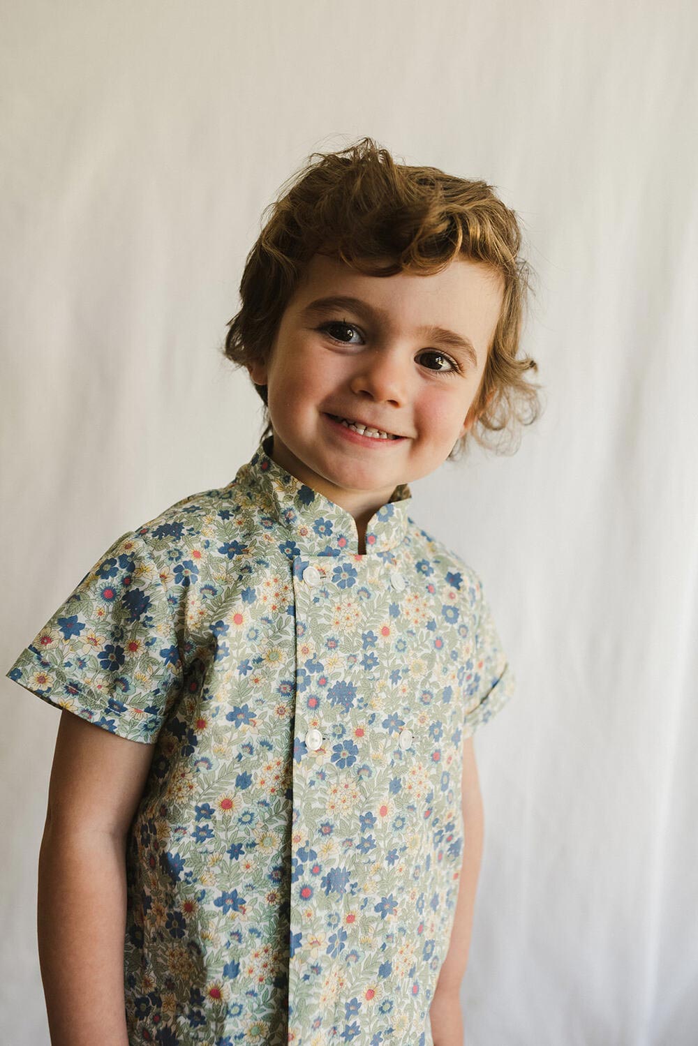 CAMISA MAO CRUZADA CON ESTAMPADO EN TONOS AZULES