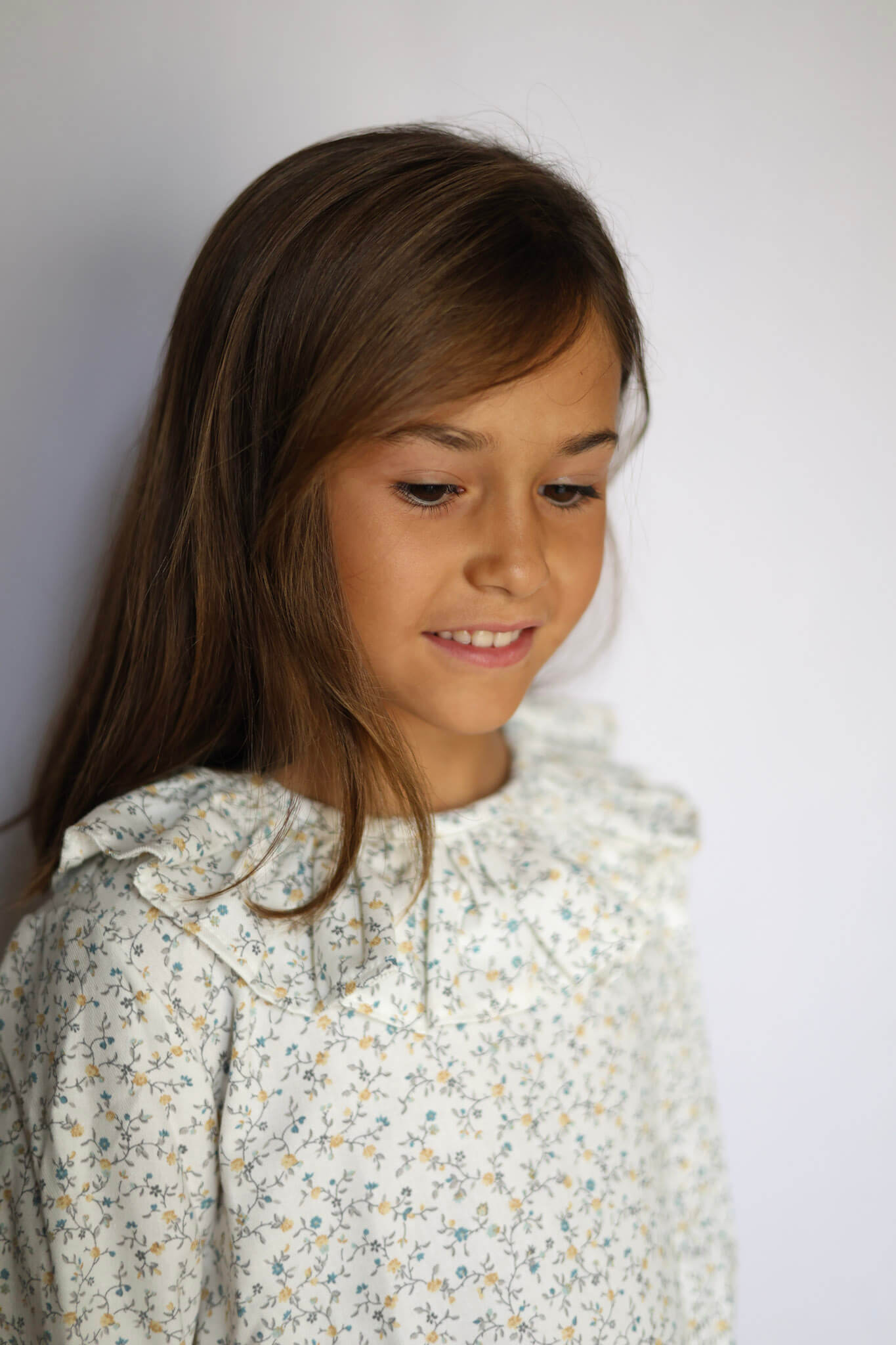 CAMISITO VILLELA ESTAMPADA CON CUELLO VOLANTE.