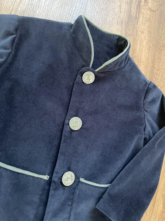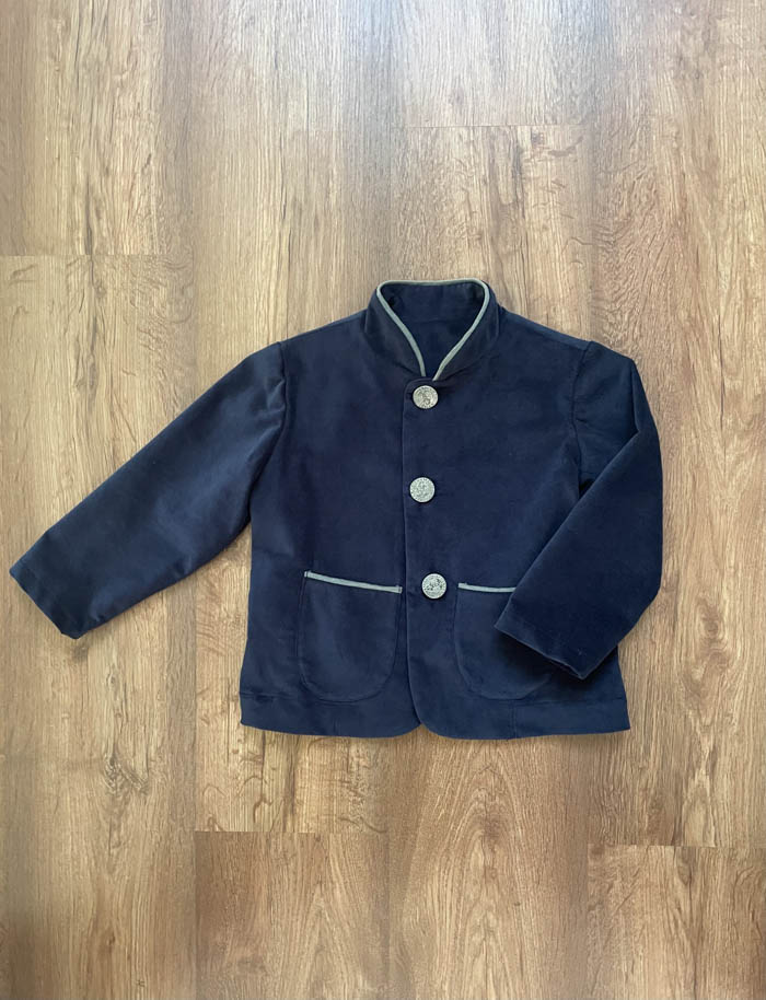 Chaqueta con cuello mao, y bolsillos hecha en pana planchada.