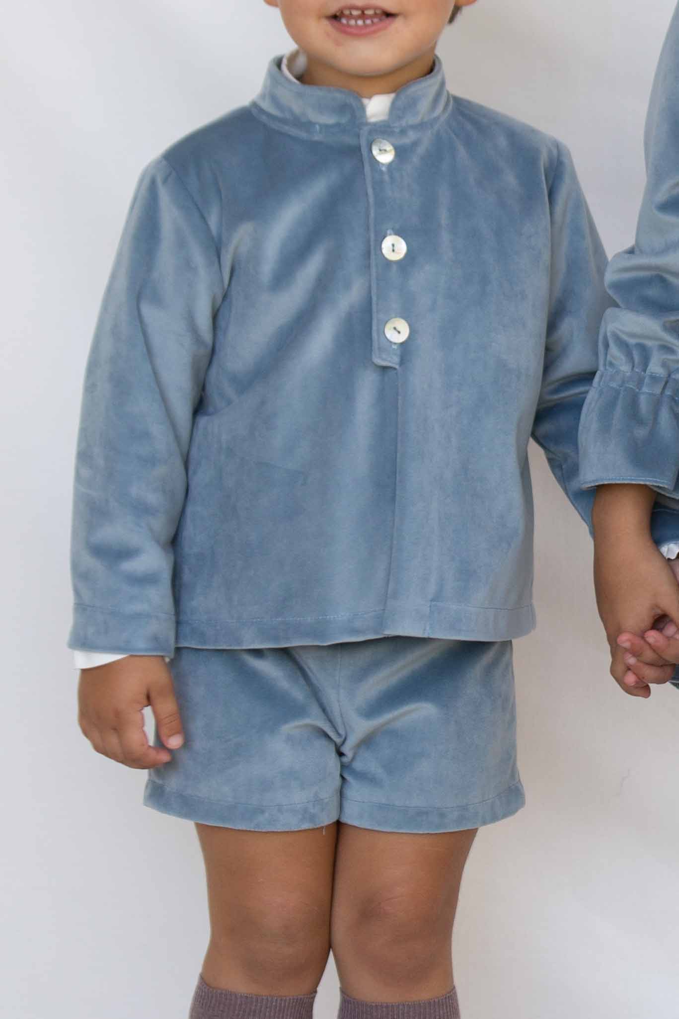 Chaqueta de niño cuello Mao en terciopelo manos seda. Esta chaqueta se hace por encargo y se puede hacer en otros tejidos y otros colores. Los precios son de la uno a la 6. Para otras tallas consulta.