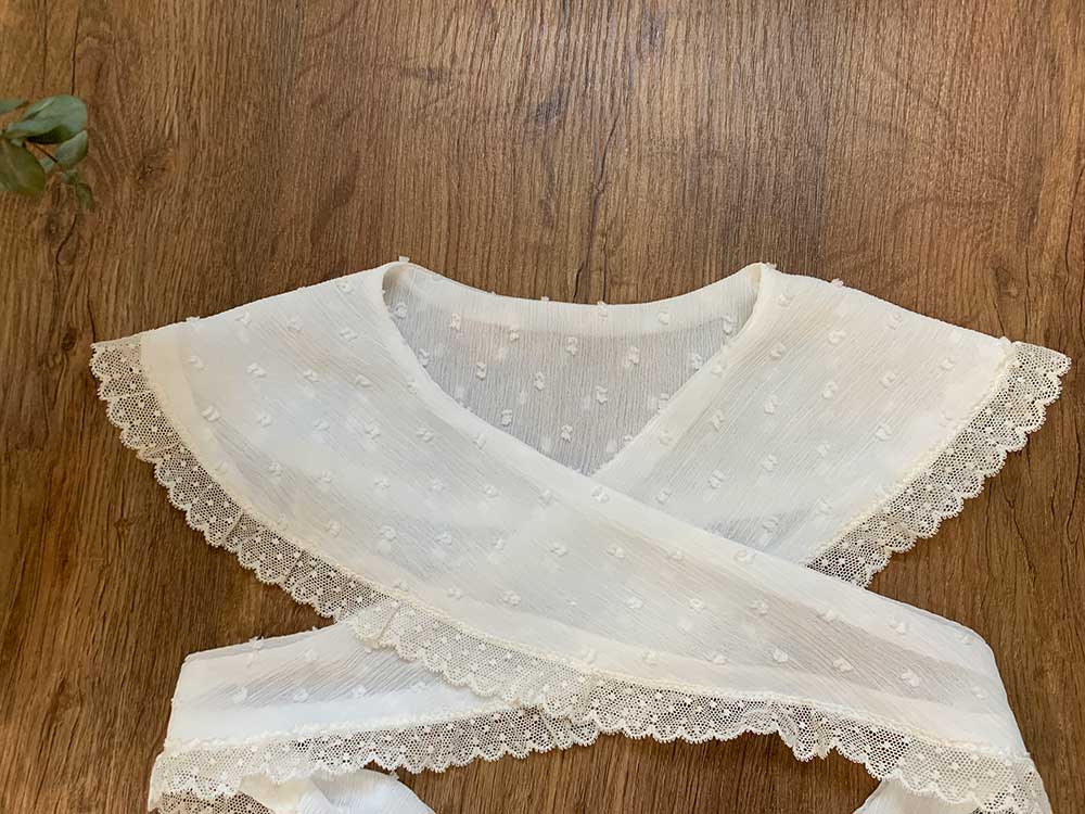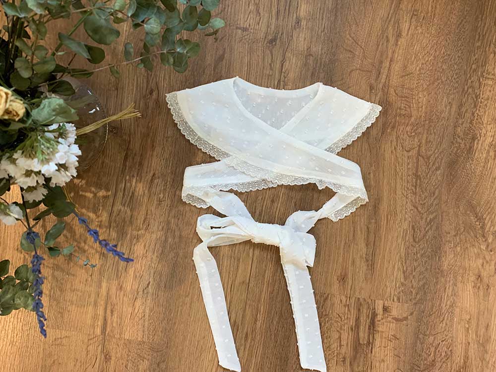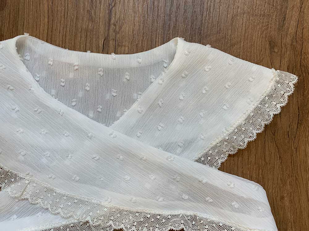 Cuello hecho en plumeti bambula con encaje valencie. Este cuello se hace por encargo. El precio es de la talla 1 a la talla 6. Si necesitáis otra talla consultar precio.