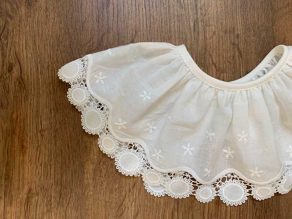 Cuello hecho en tira bordada. Este cuello se hace por encargo y solo hay tres medidas P(1-2), M(3-4) y G (5-6)