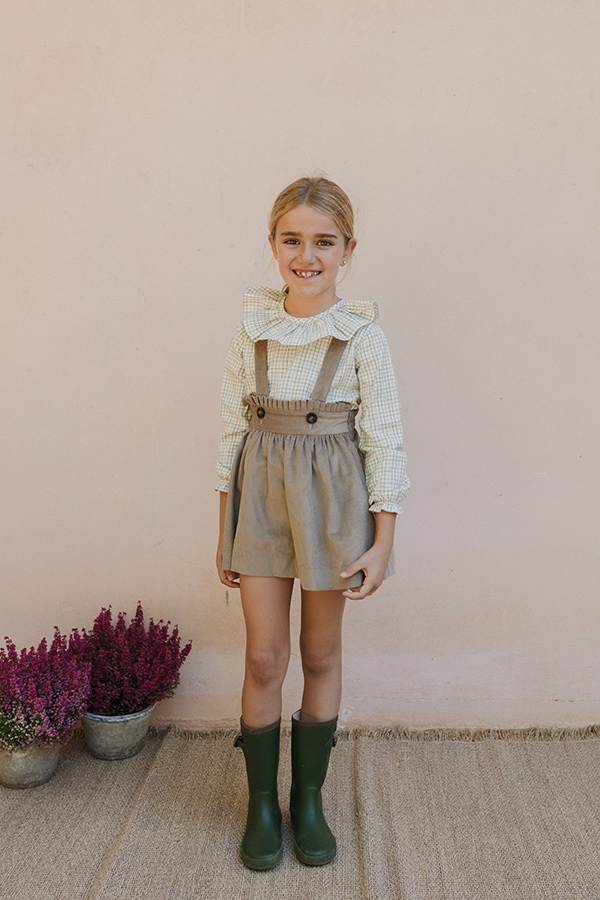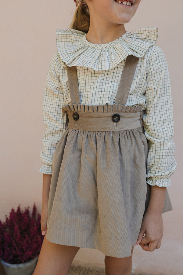 FALDA PANA CON TIRANTES Y DETALLE DE VOLANTITO EN LA CINTURA. TALLA GRANDE.