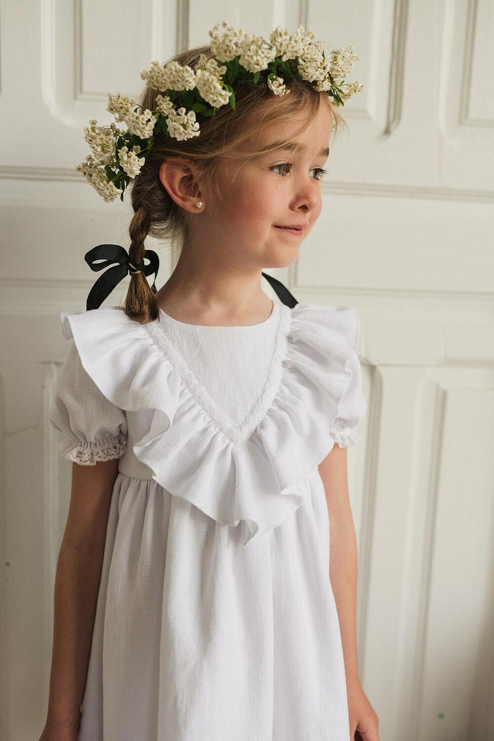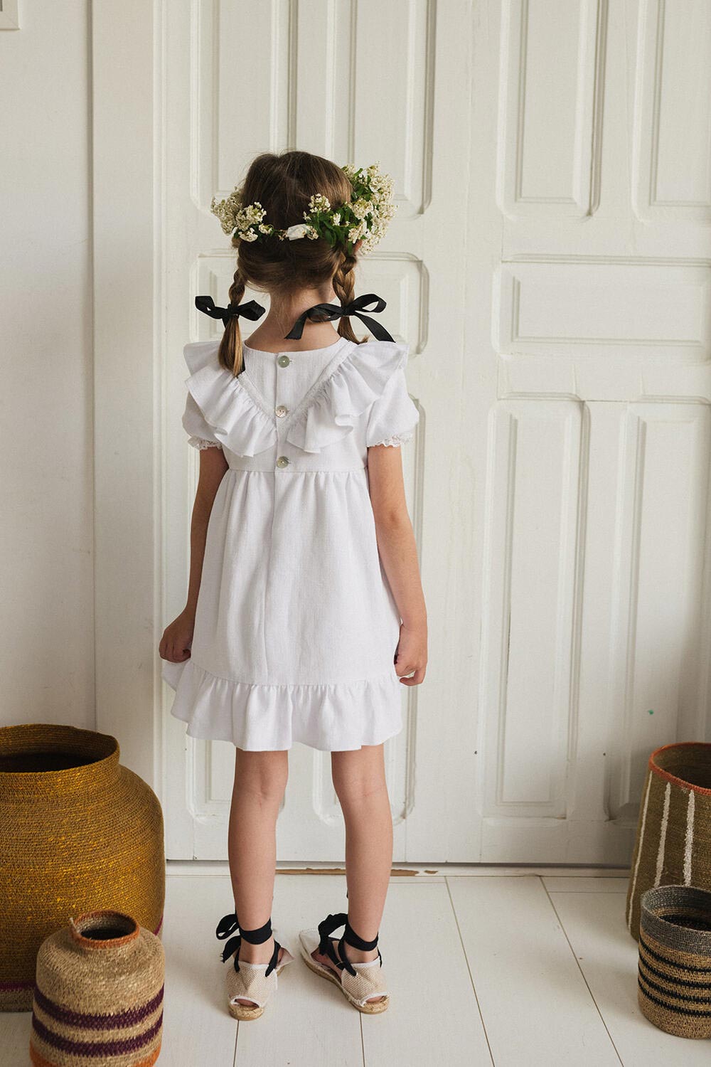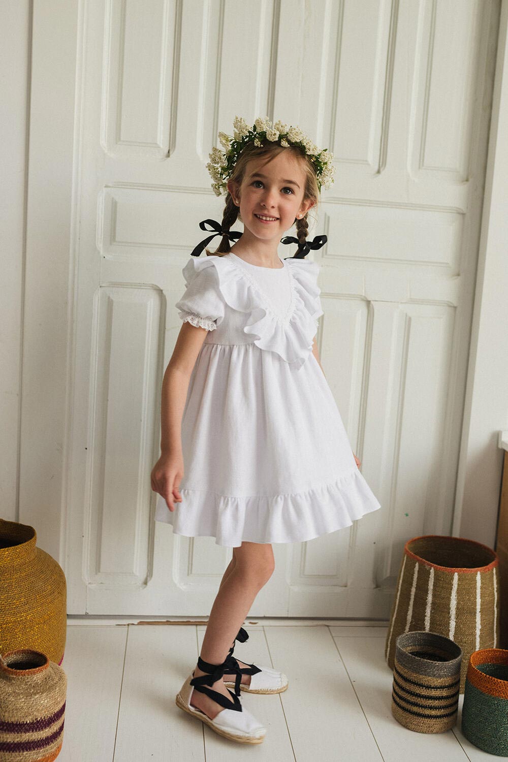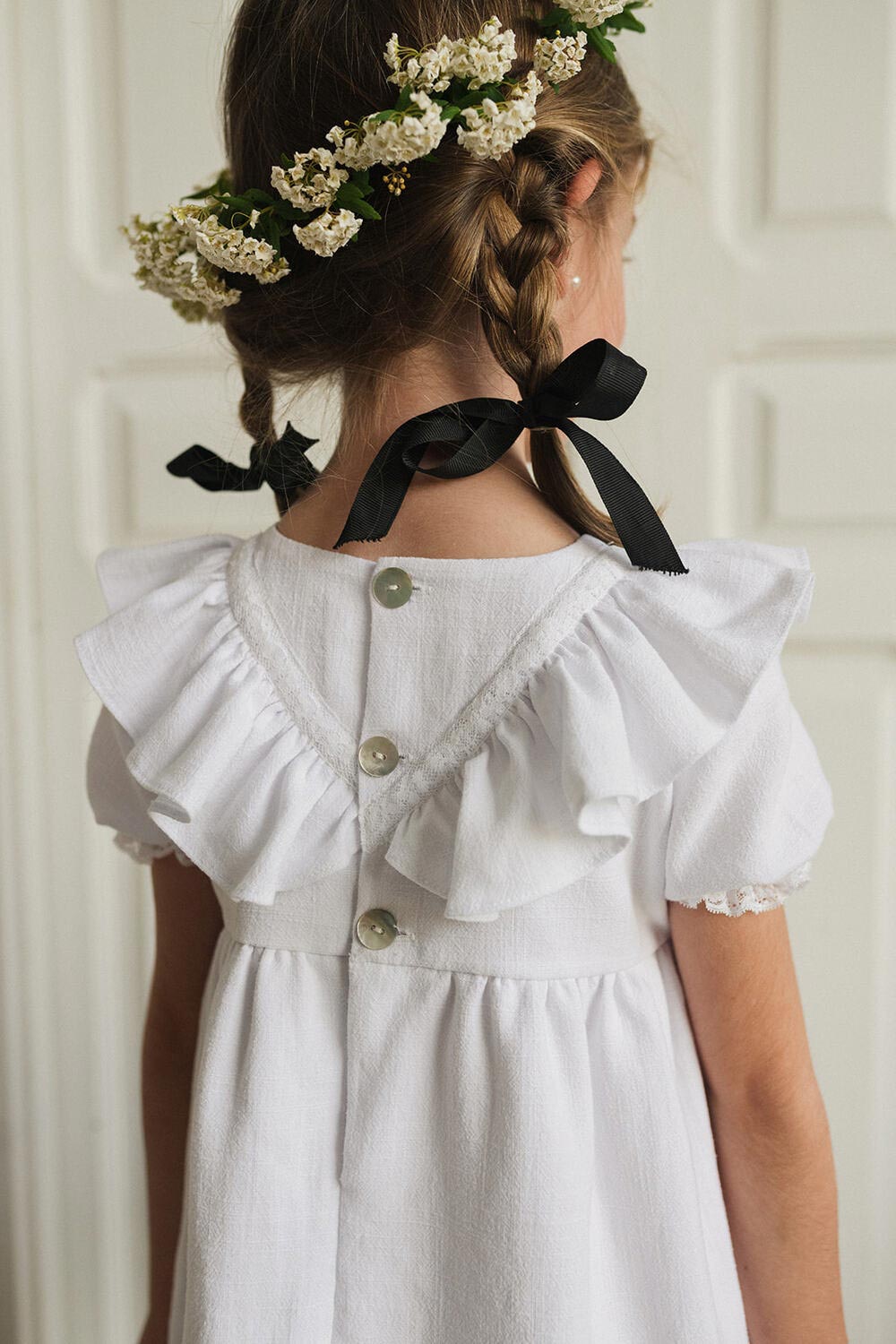 VESTIDO CON VOLANTE EN FORMA DE PICO. SE HACEN POR ENCARGO Y SE PUEDEN MODIFICAR TEJIDO, COLOR Y LARGO.