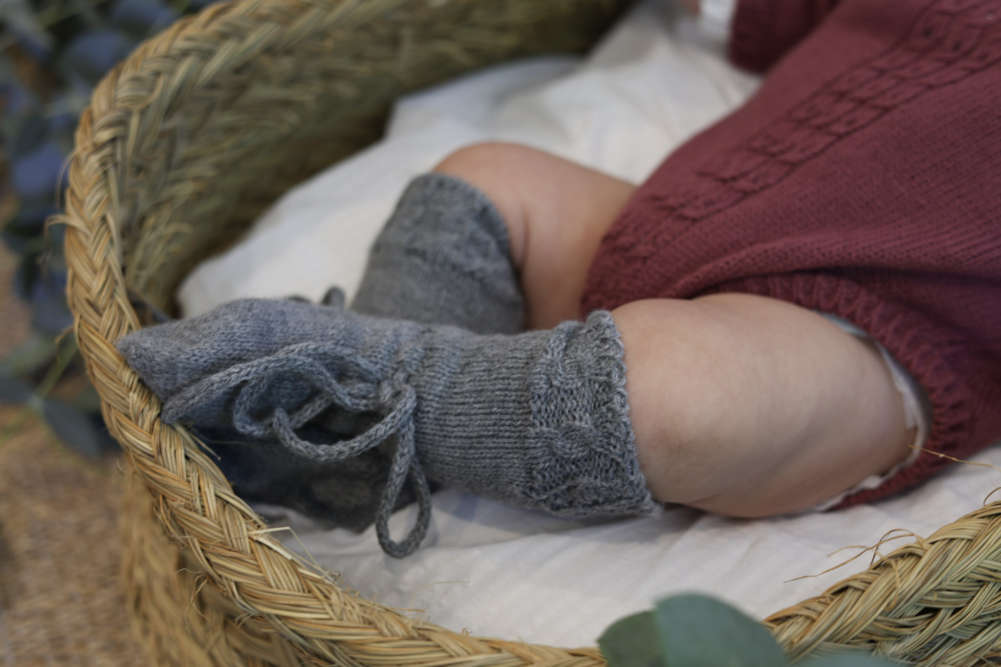 Patucos altos de puntos con lazada. Si no queda la talla que necesitas, escríbenos para encargarlos.