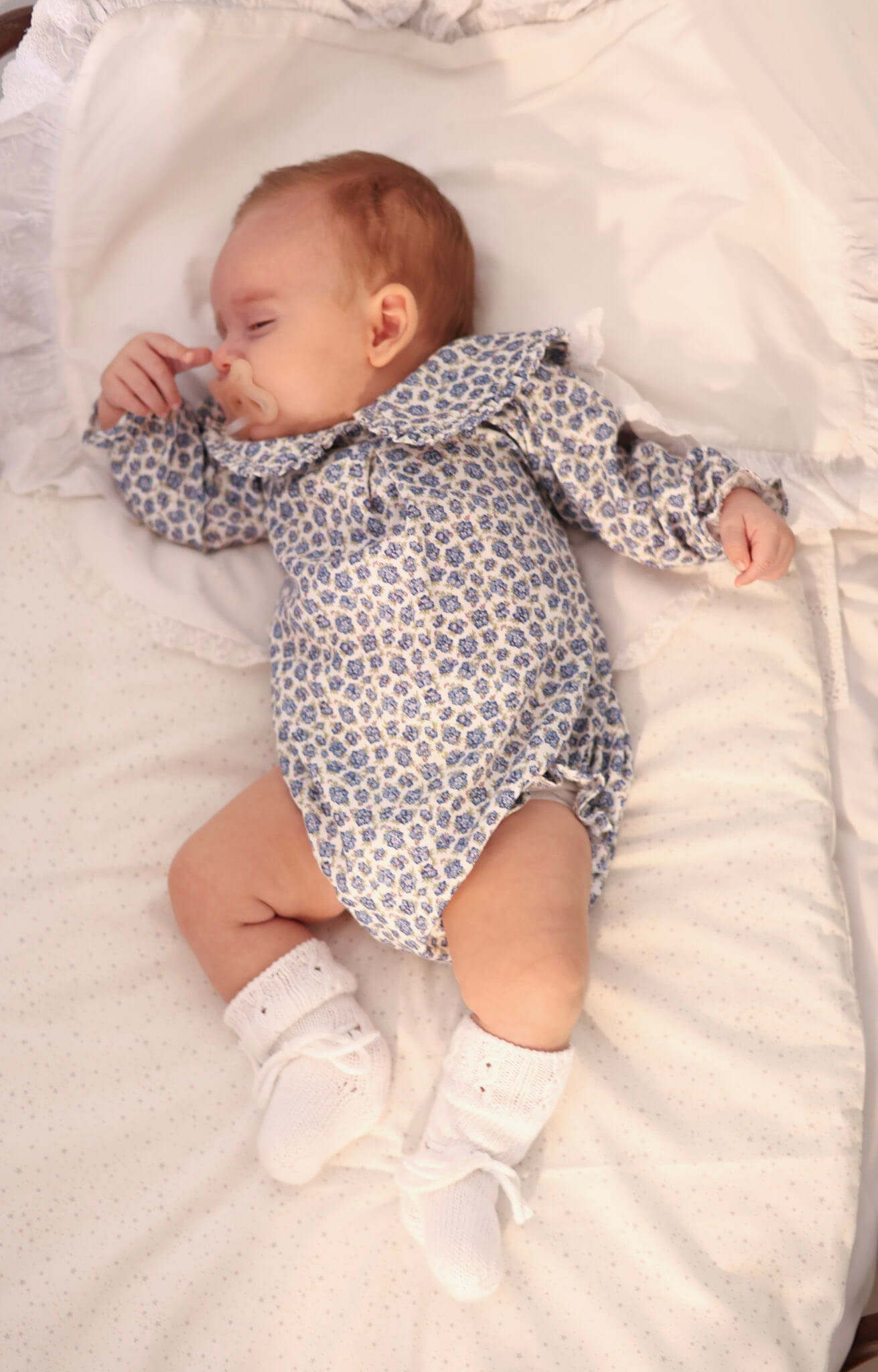 PELELE ESTAMPADO EN TONOS AZULES CON DOBLE CUELLO.