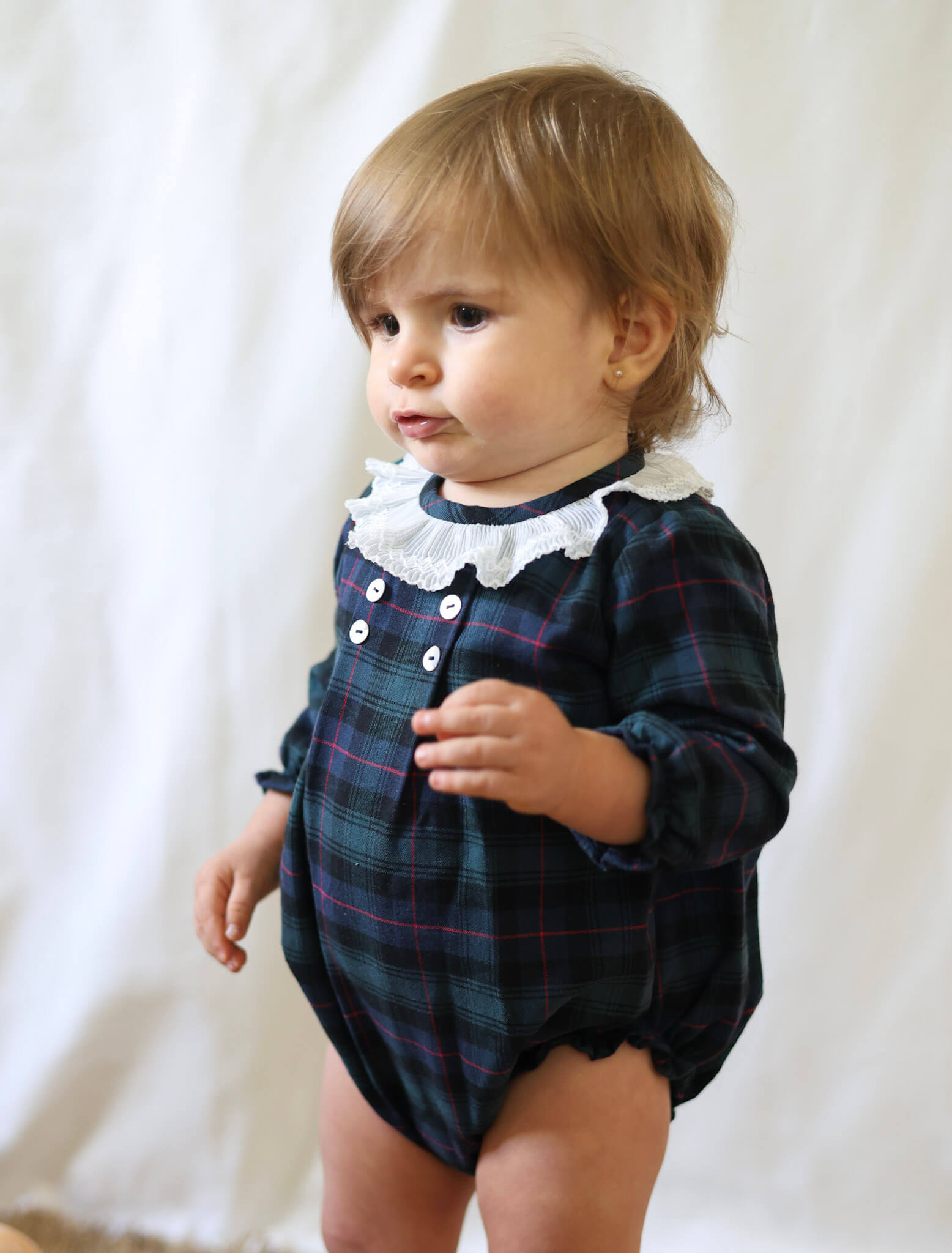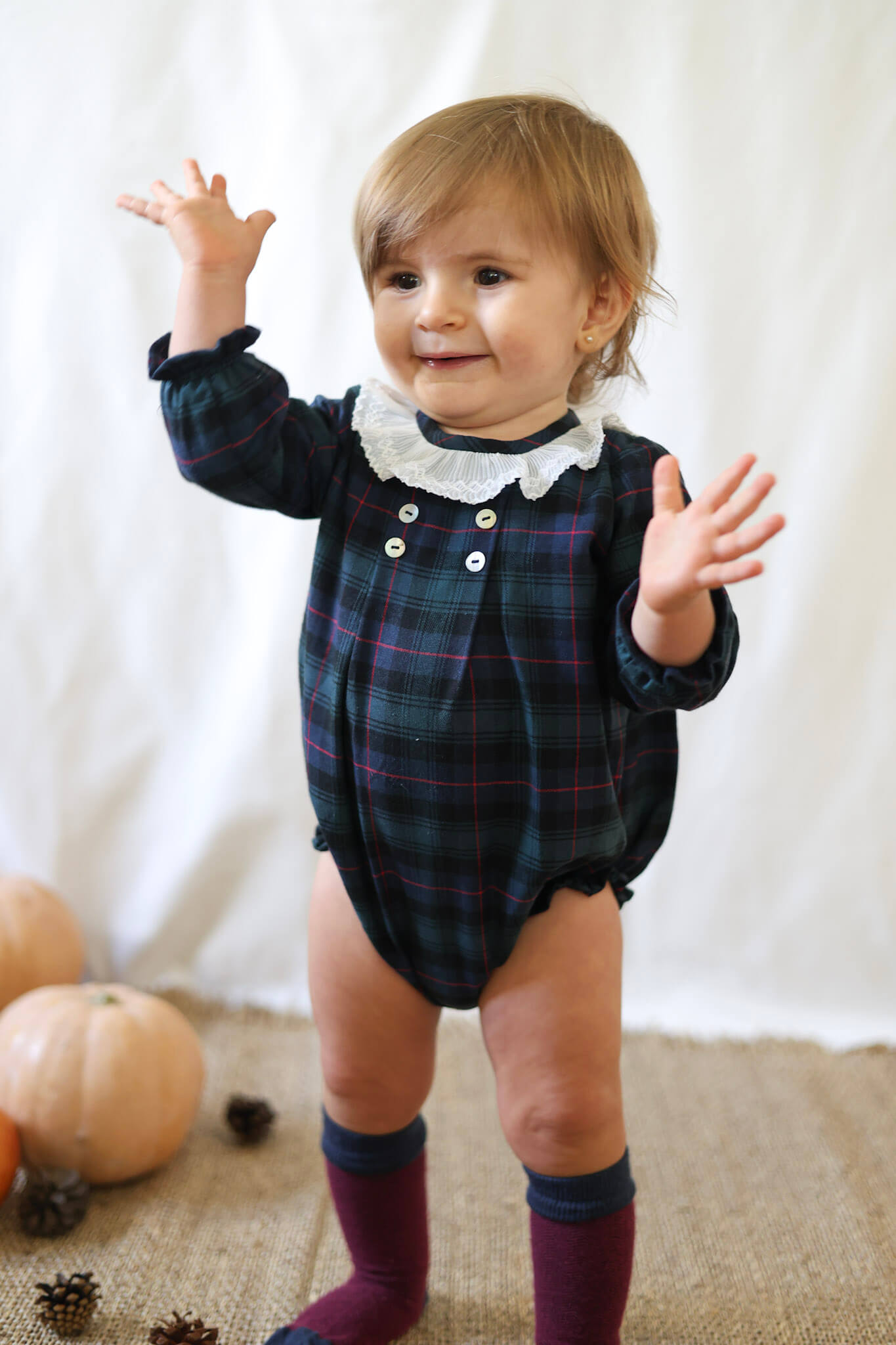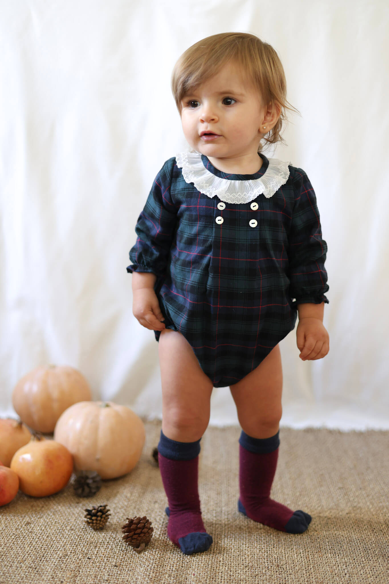PELELE DE VILLELA TARTÁN CON CUELLO Y MANGAS CON UN PLISADO ESPECIAL.