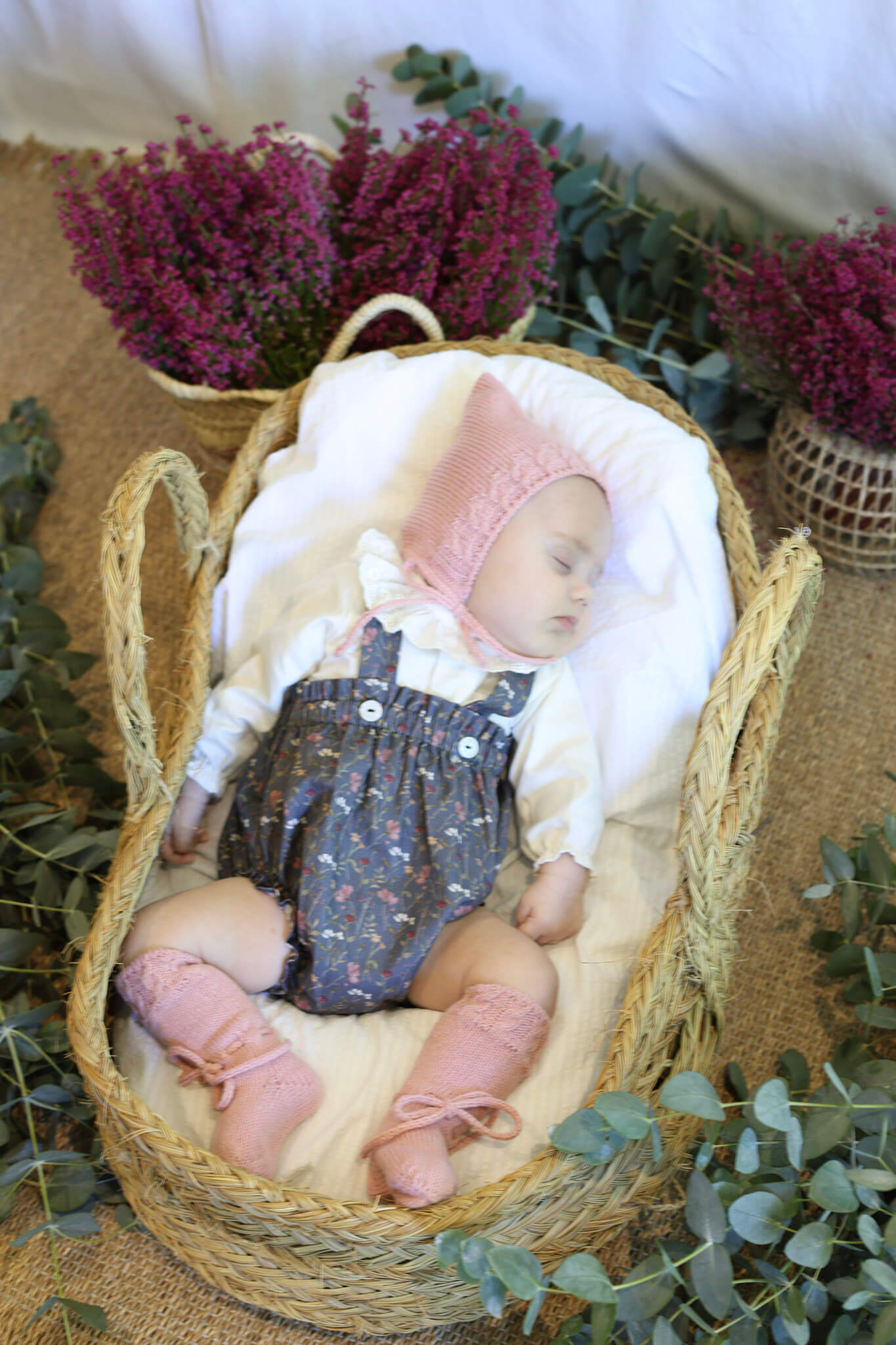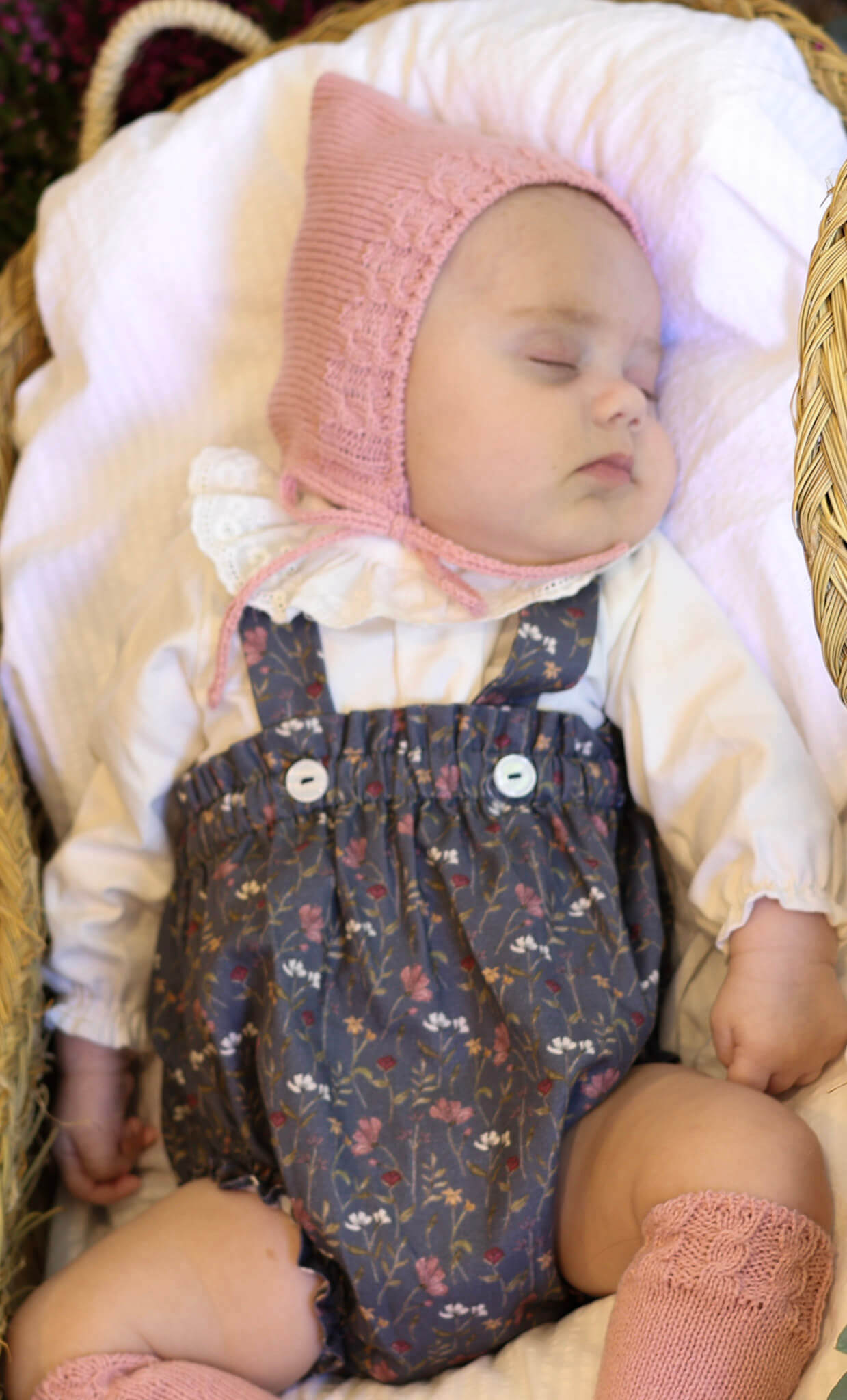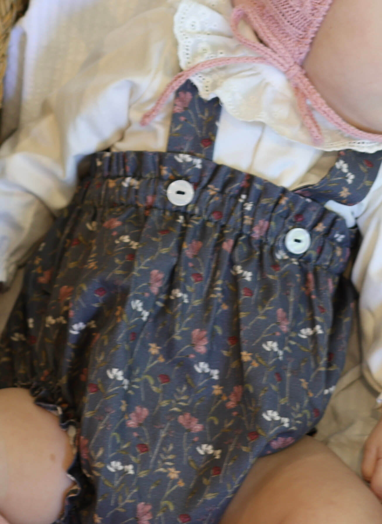 RANITA HECHA EN VILLELA ESTAMPADA FONDO AZUL GRISÁCEO Y FLORES SILVESTRES