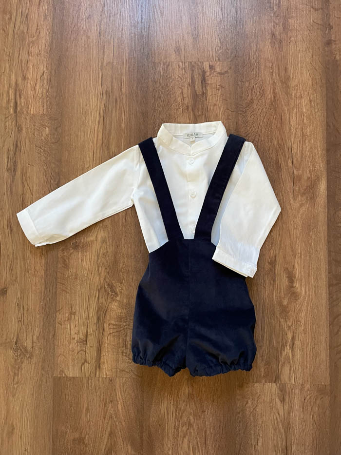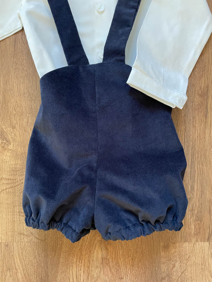 Pantalón pana planchada azul marino con gomas en pernil.