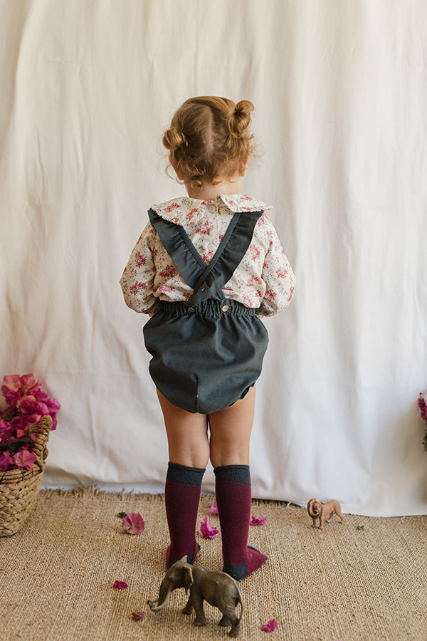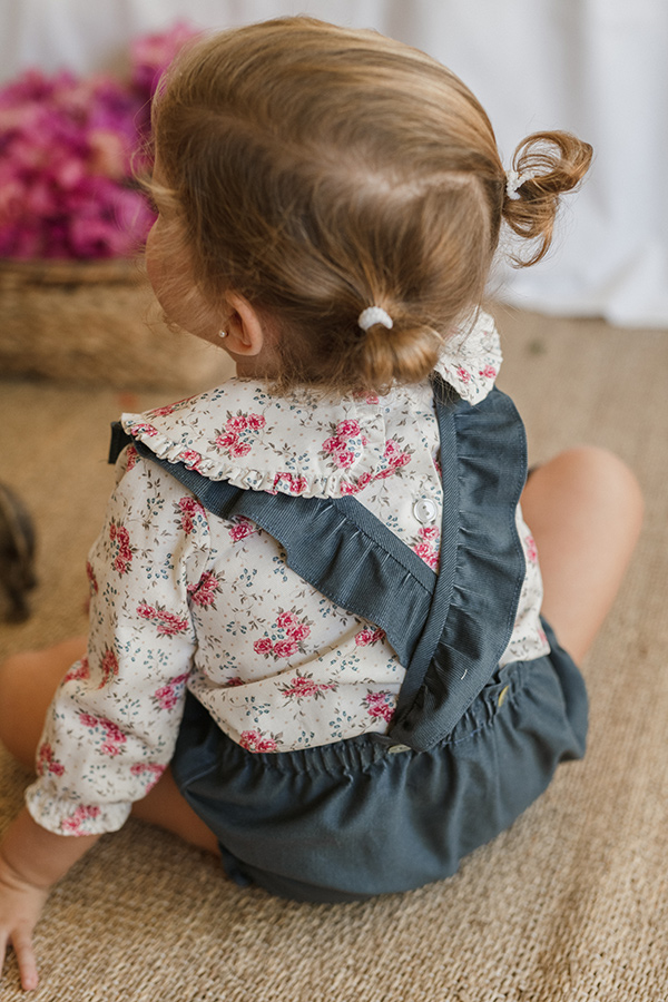 RANITA CON CINTURA ENGOMADA HECHA EN MICROPANA AZULONA.