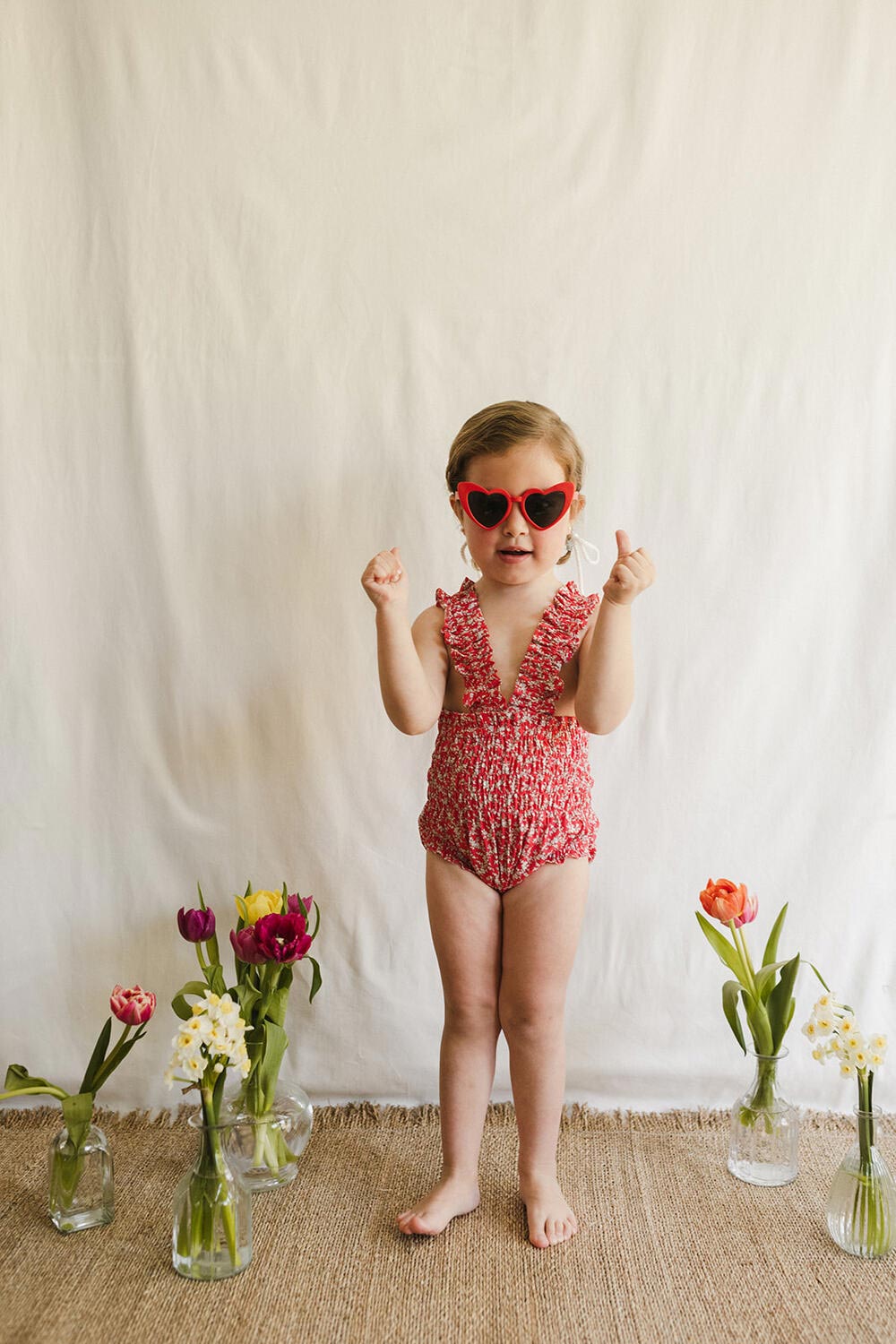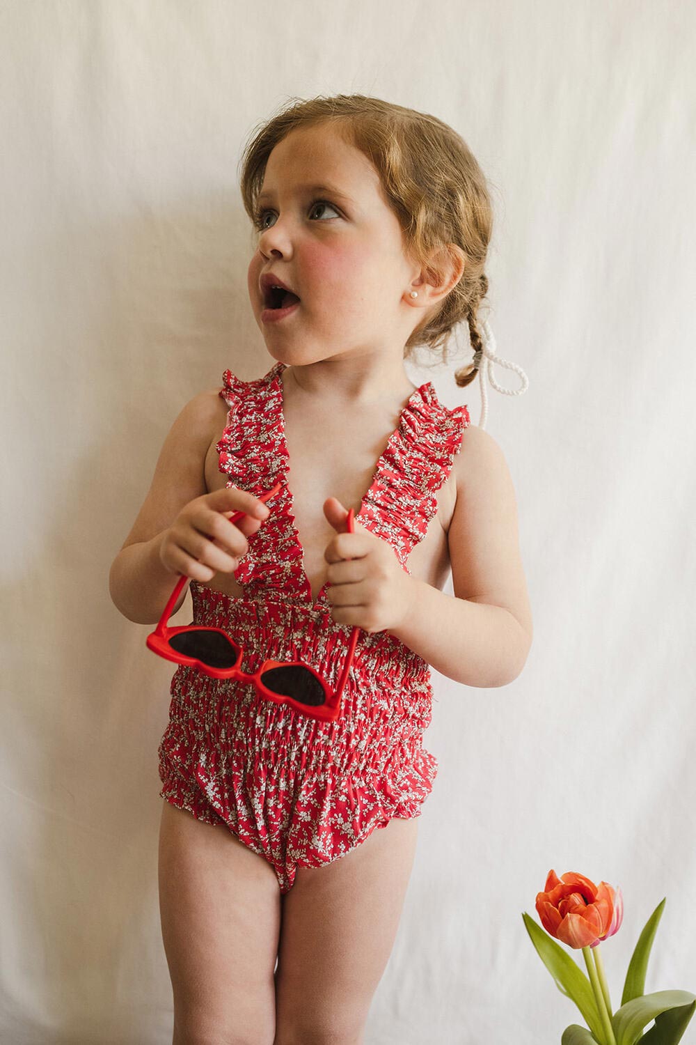 RANITA BAÑADOR ENGOMADA ROJA ESTAMPADO FLORAL