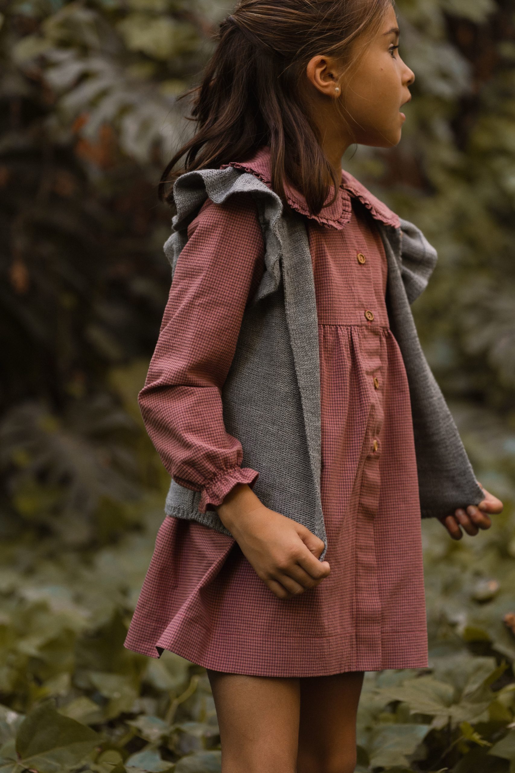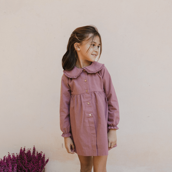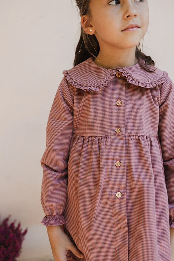 VESTIDO Cuadritos vichy abrocado delante con botones de madera.